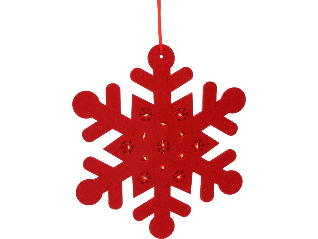 Vánoční sněhová vločka LED HANGDECO, 35cm, filc, červená
