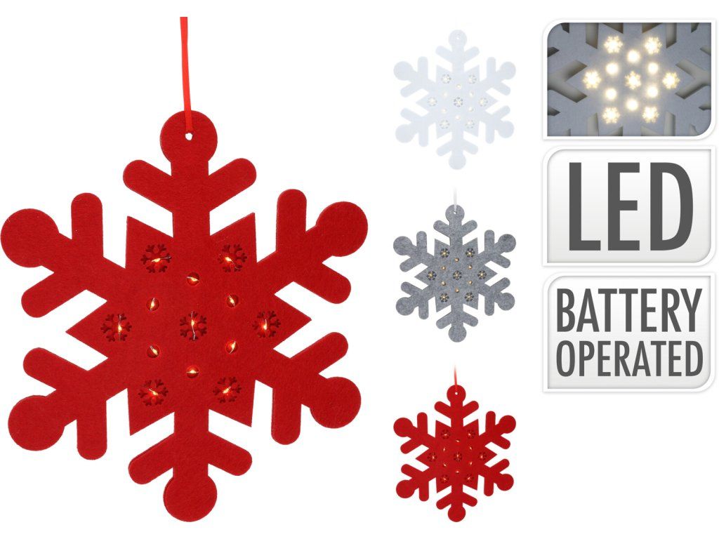 Nádherná sněhová vločka je ztělesněním vánoční kouzelnosti. Vyrobena z kvalitního filcu a osvícena LED osvětlením, tato vločka přinese do vašeho interiéru pohádkovou atmosféru.