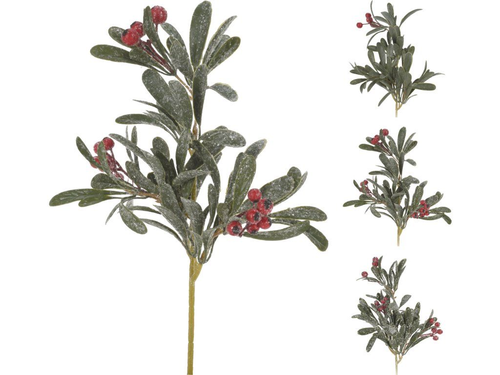 Máte na výběr ze tří variant: zelená s červenými bobulemi, která zaručeně vytvoří nádherný kontrast v každém prostoru. Tato větvička zanechá výrazný dojem a zaručeně zpříjemní prostředí.