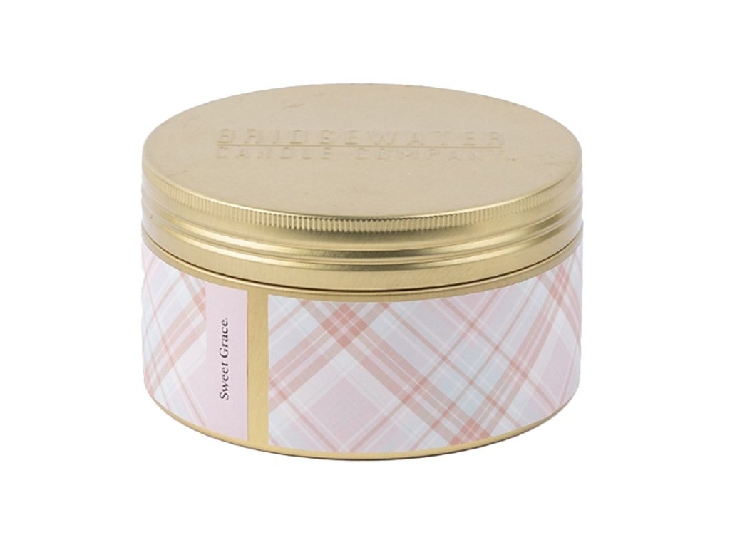 Naše vánoční tříknotá svíčka Sweet Grace v elegantní kulaté plechovce se zlatým povrchem je přesně tím, co potřebujete.