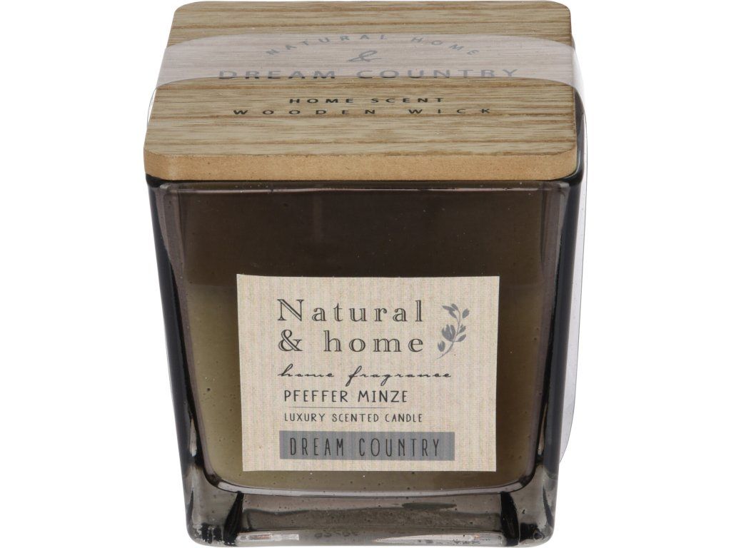 Vonná svíčka ve skle, dřevěné víčko,10cm, kouřová, vůně máta peprná