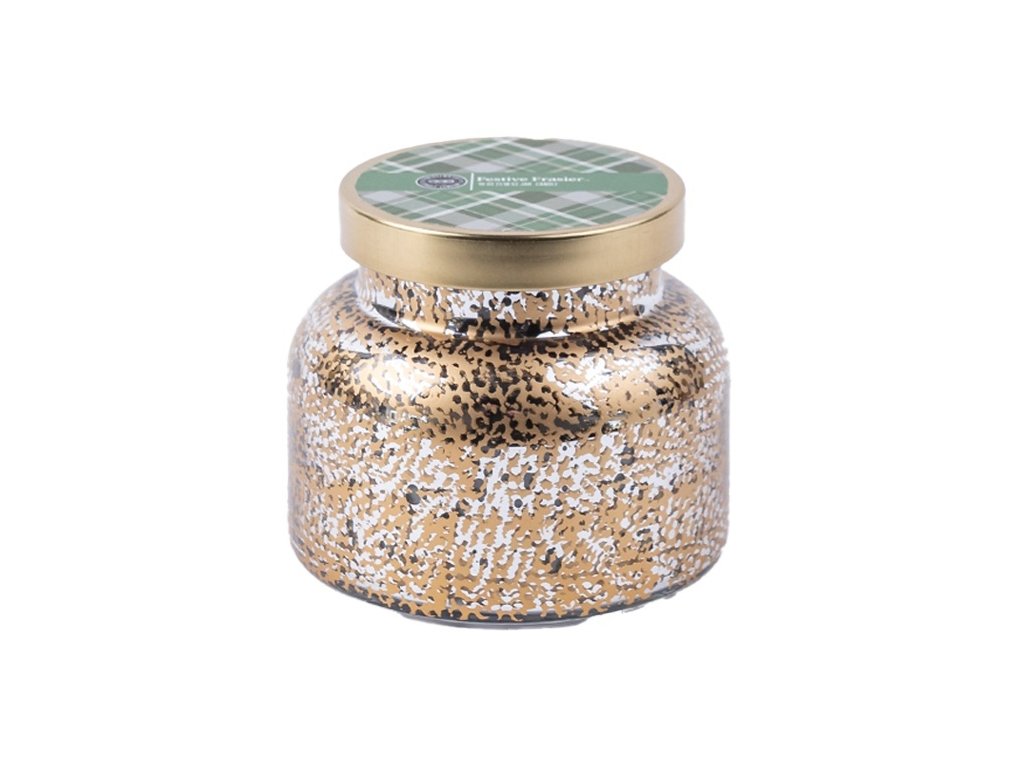 Vylepšete sváteční atmosféru se svíčkou Holiday Jar Candle Festive Frasier od Bridgewater Candle Company, která díky zářivé zlaté a stříbrné rtuťové povrchové úpravě dodá každé příležitosti magický lesk. Skleněná nádoba je nejen elegantní dekorací na slavnostní stůl nebo při rodinném setkání, ale i praktickým doplňkem, který rozzáří váš domov příjemným světlem plným pohody.