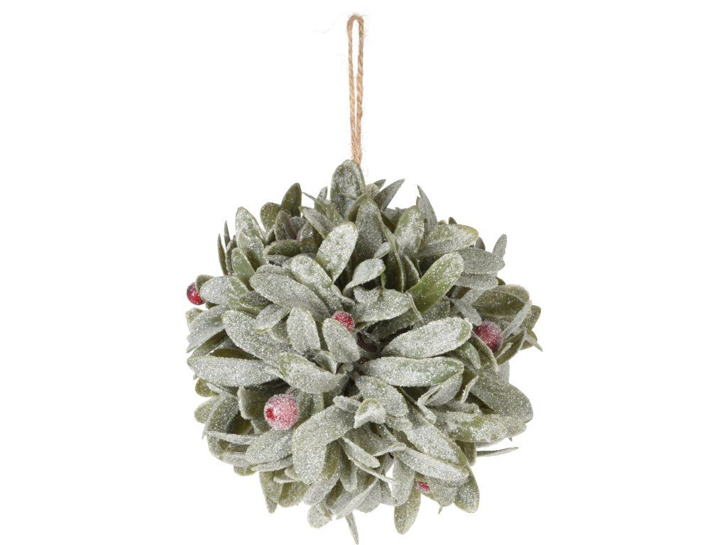 Závěsná dekorační koule Leaf s červenými bobulemi - prostředek pro vánoční kouzlo
