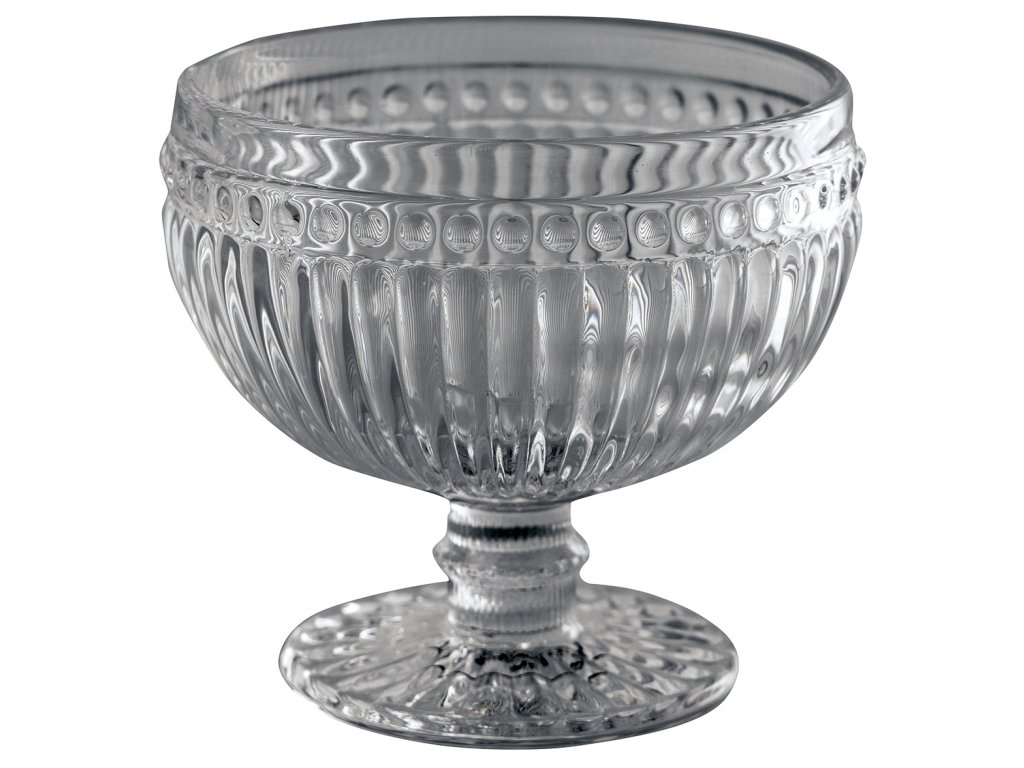 Zdobená skleněná miska na nožce Alice Grey je součástí kolekce Alice dánské značky GreenGate